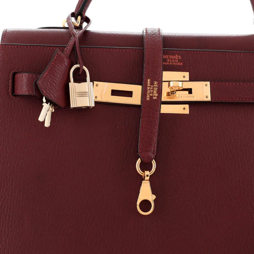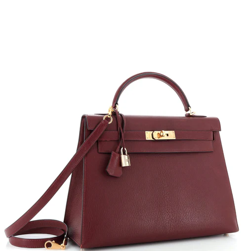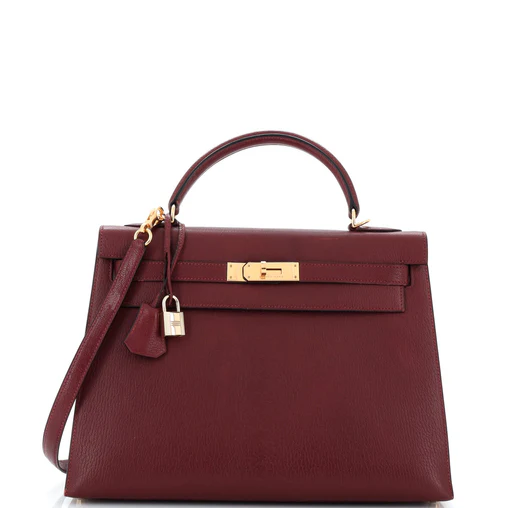 Kelly Handbag Rouge H Chevre de Coromandel with Gold Hardware